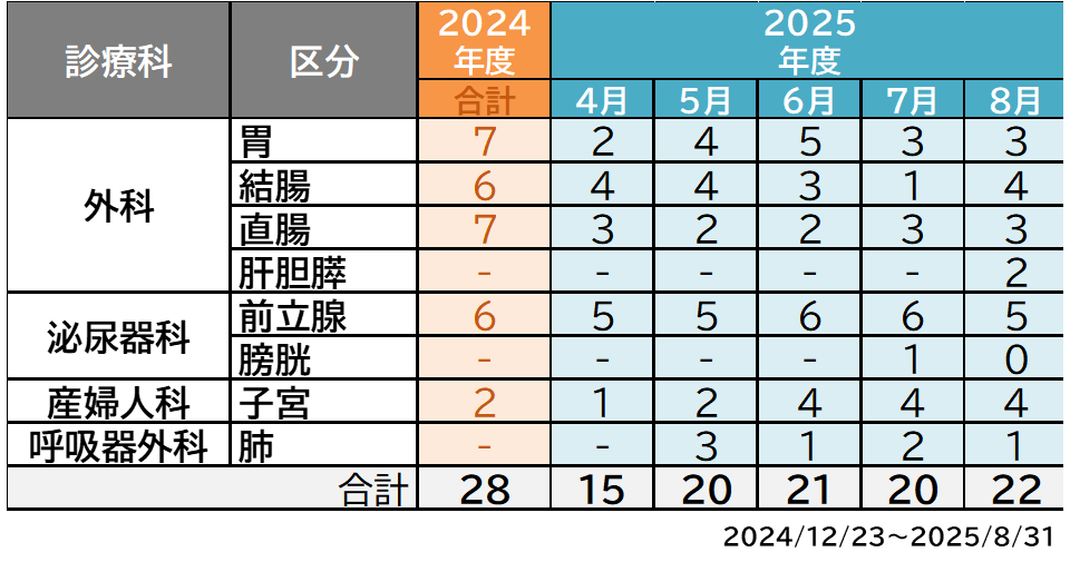 開腹手術 | 腹腔鏡手術 | ロボット支援手術 | |||||