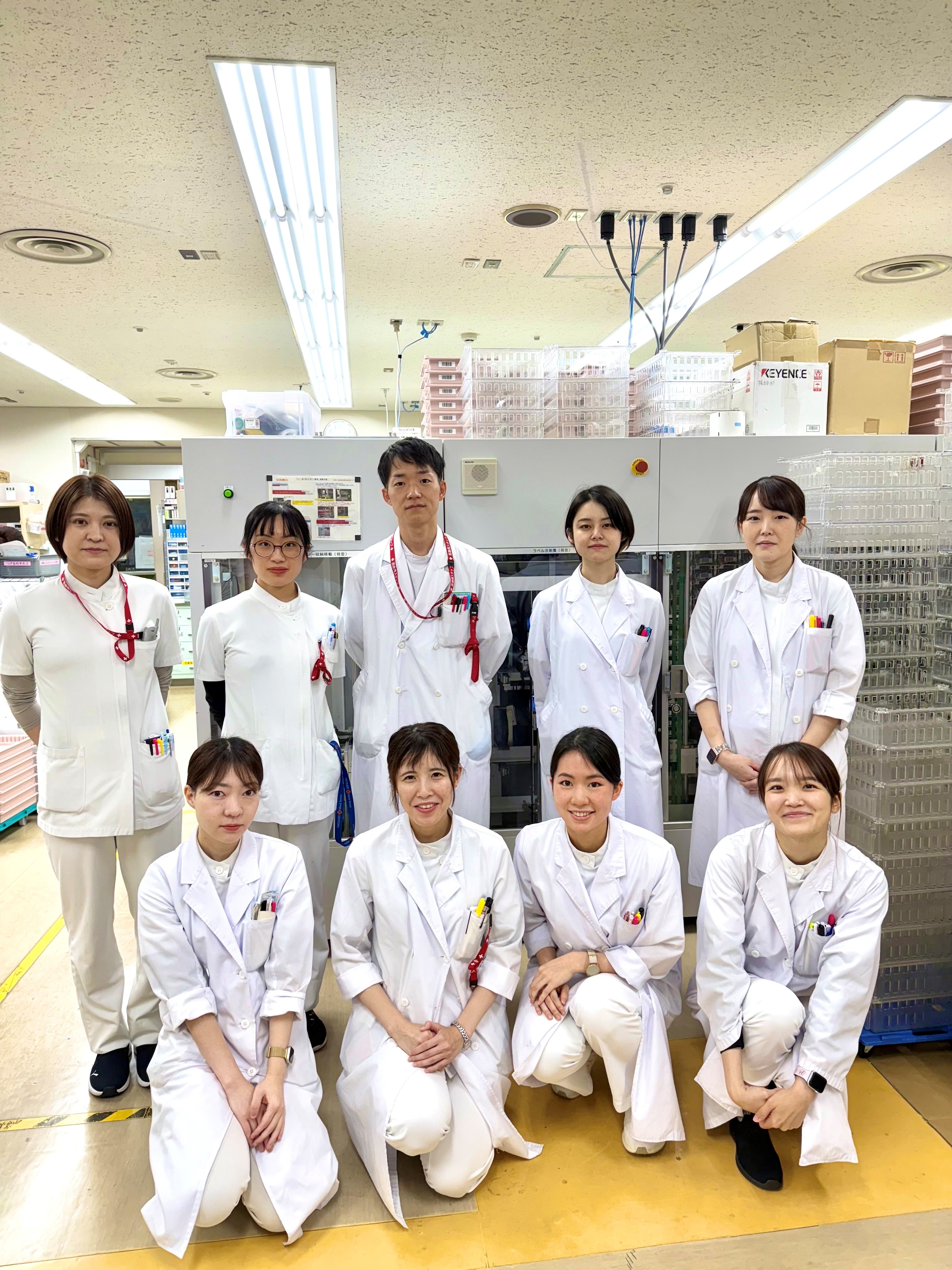 がん化学療法チームは、外来患者さんへの治療開始時の薬剤説明、新規レジメン登録などを行っています。医師、看護師とのカンファレンスに参加し、情報収集・提供を行いながら、より良い治療につながるようサポートしています。さらに、HBV再活性化対策の徹底や、曝露対策の拡充など、患者さんもメディカルスタッフも安全に治療が施行できるよう活動しています。患者さんも含めたチームで、患者さんが納得できる治療をすすめていけるよう日々奮闘中です。