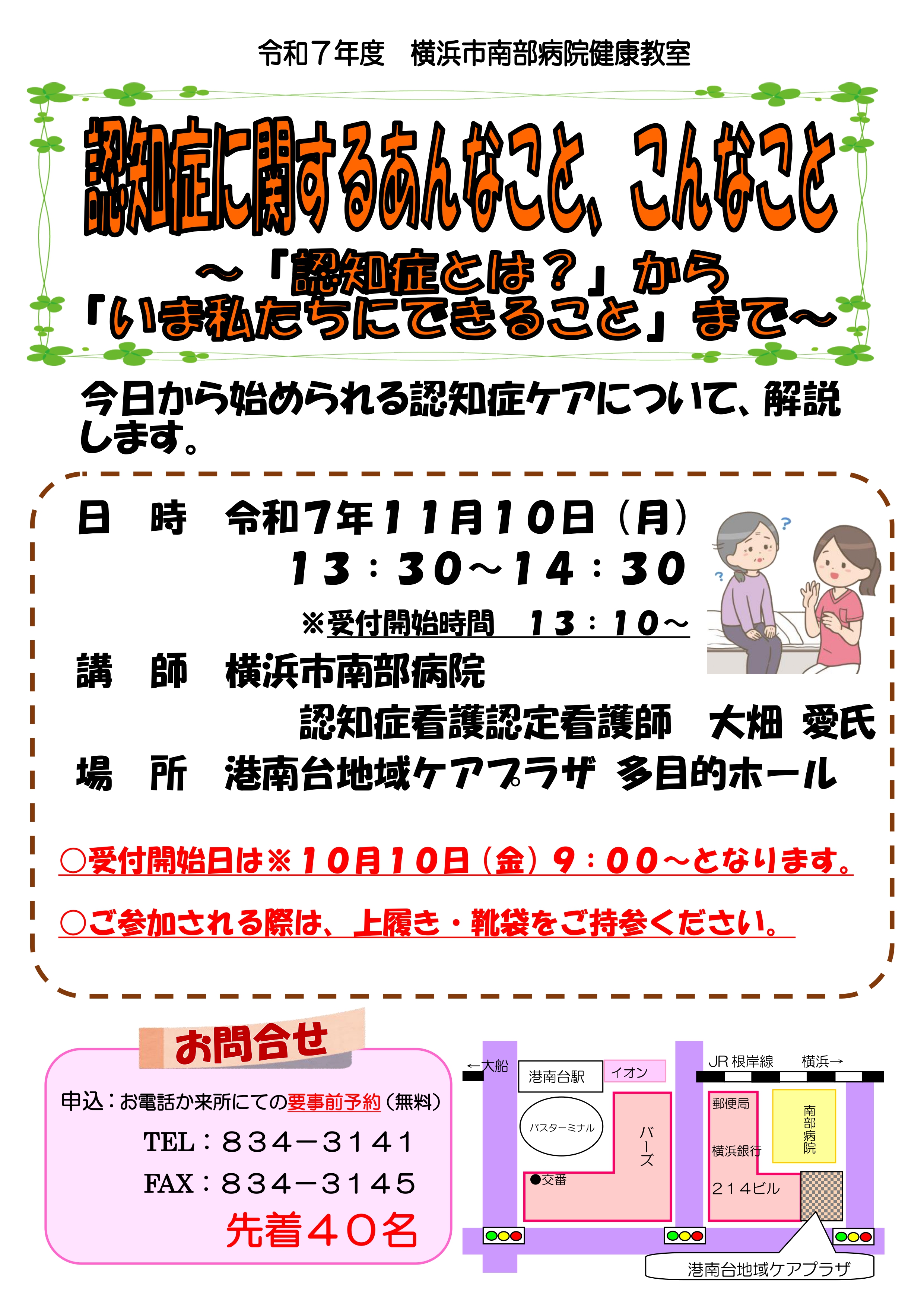 申込は来所もしくはお電話045-834-3141(港南台地域ケアプラザ)にて。